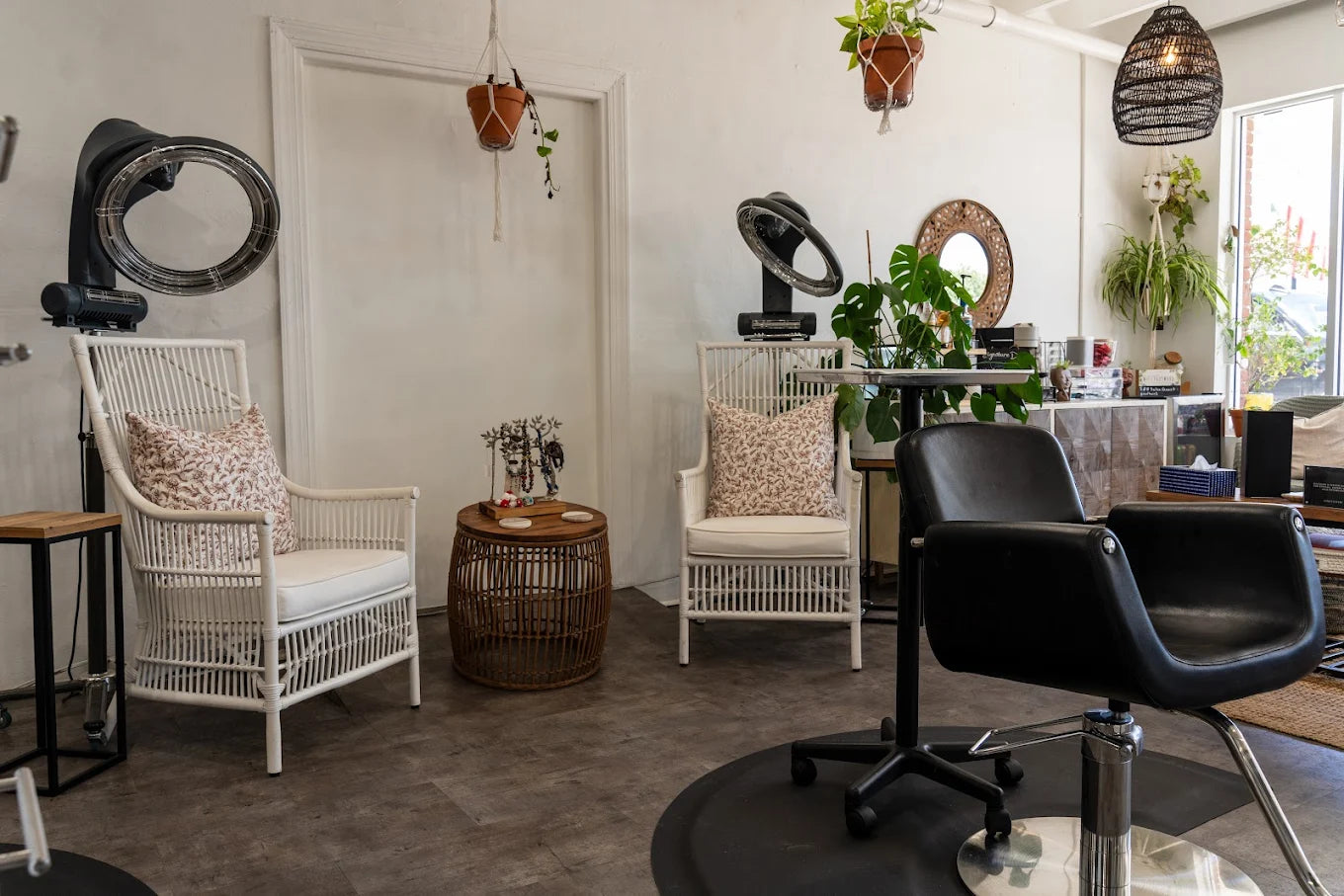 We specialize in balayage, blonding, color correction, keratin treatments, and hand-tied hair extensions including IBE (Invisible Bead Extensions), K-tips, I-tips, mesh integration, and toppers. Our blow-dry bar is perfect for special occasions or a mid-week pick-me-up.